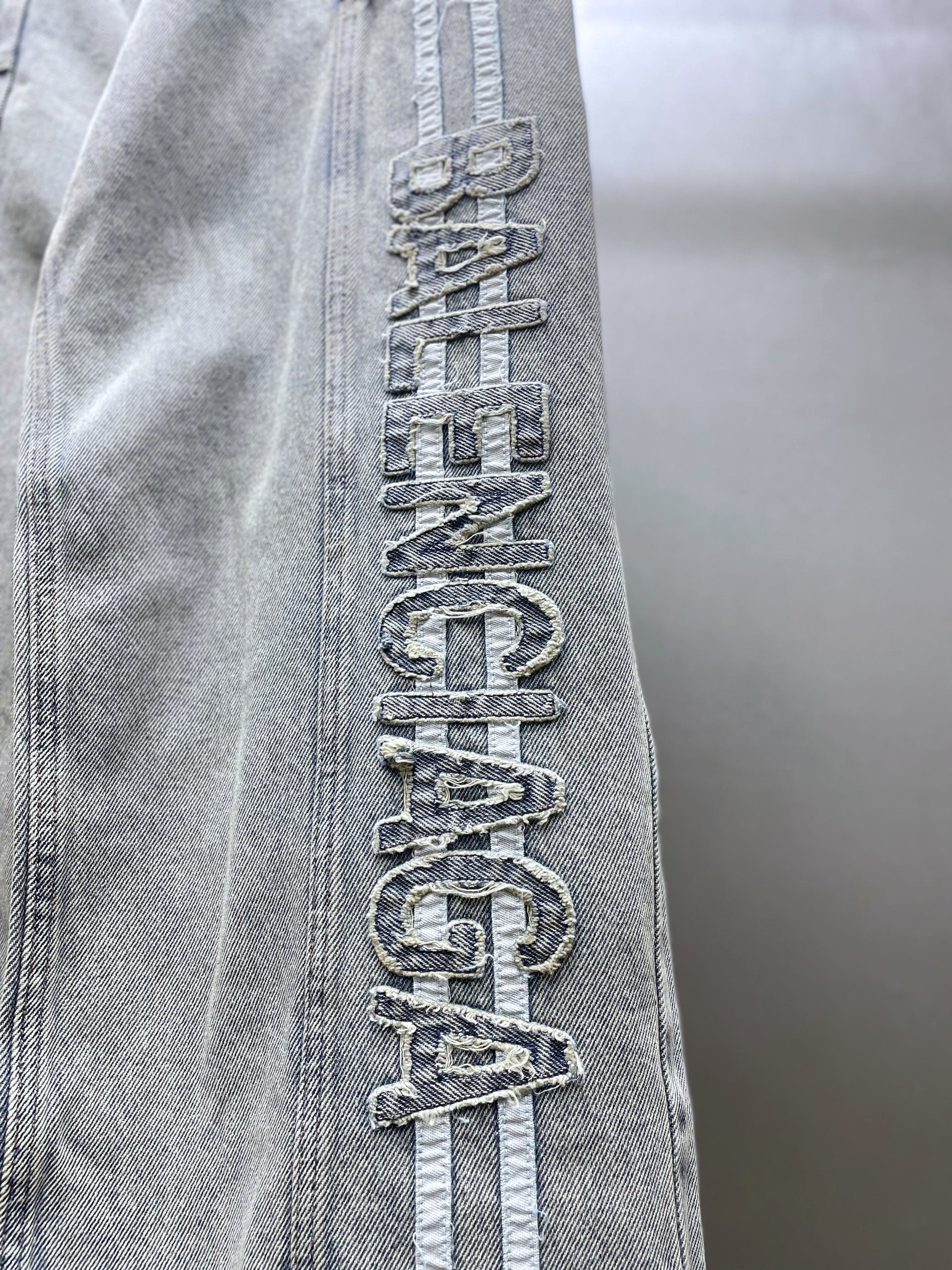 Pantalones azul claro, mezclilla con efecto lavado, acabado envejecido y con detalle del nombre en efecto desgarro en el lateral, diseño clásico de cuatro bolsillos. Composición Algodón 98%, Elastano 2%
