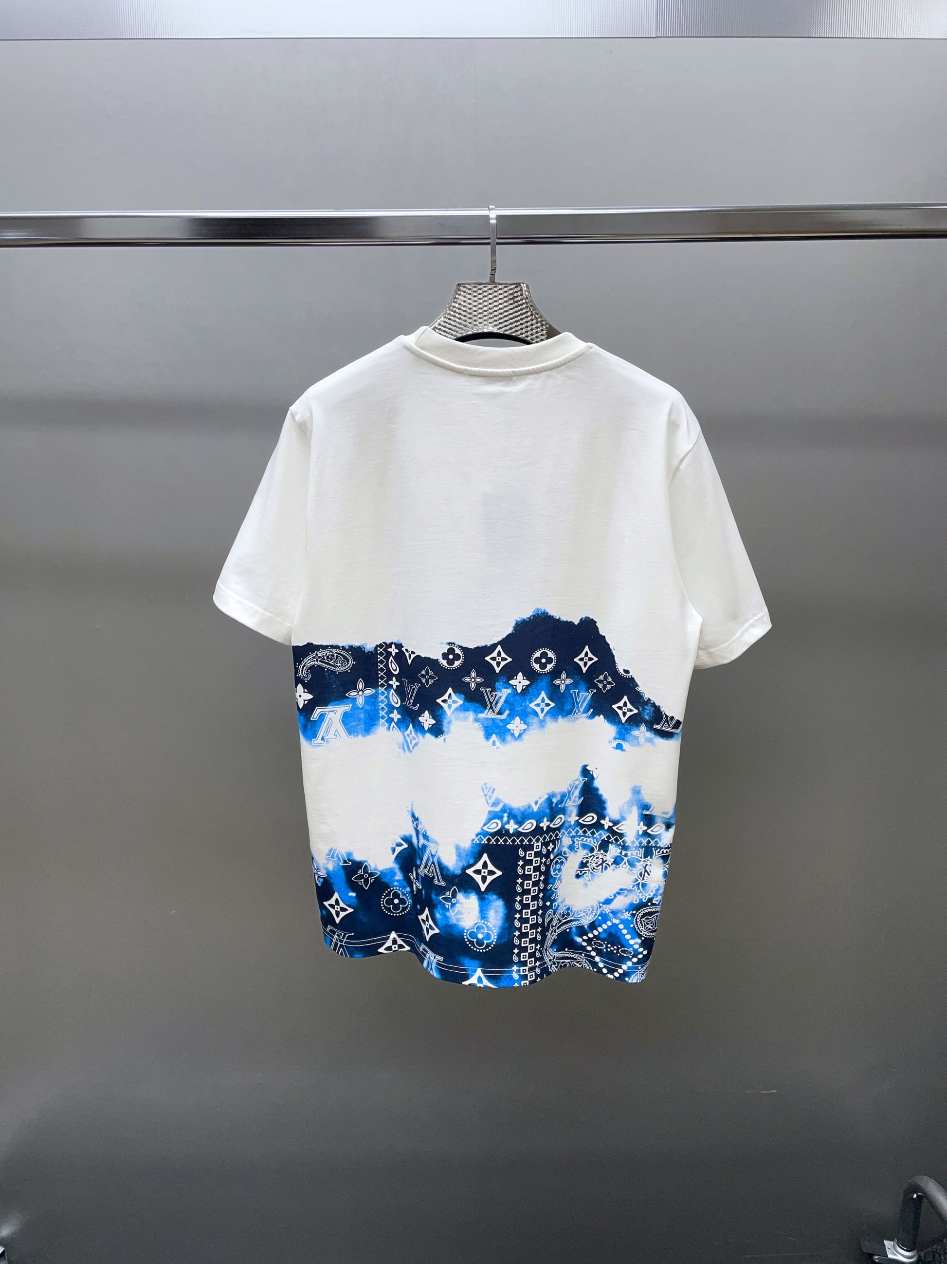 Camiseta manga corta de cuello redondo, decorada con vinilo en tonos azulados. Confeccionada 100% en algodón.