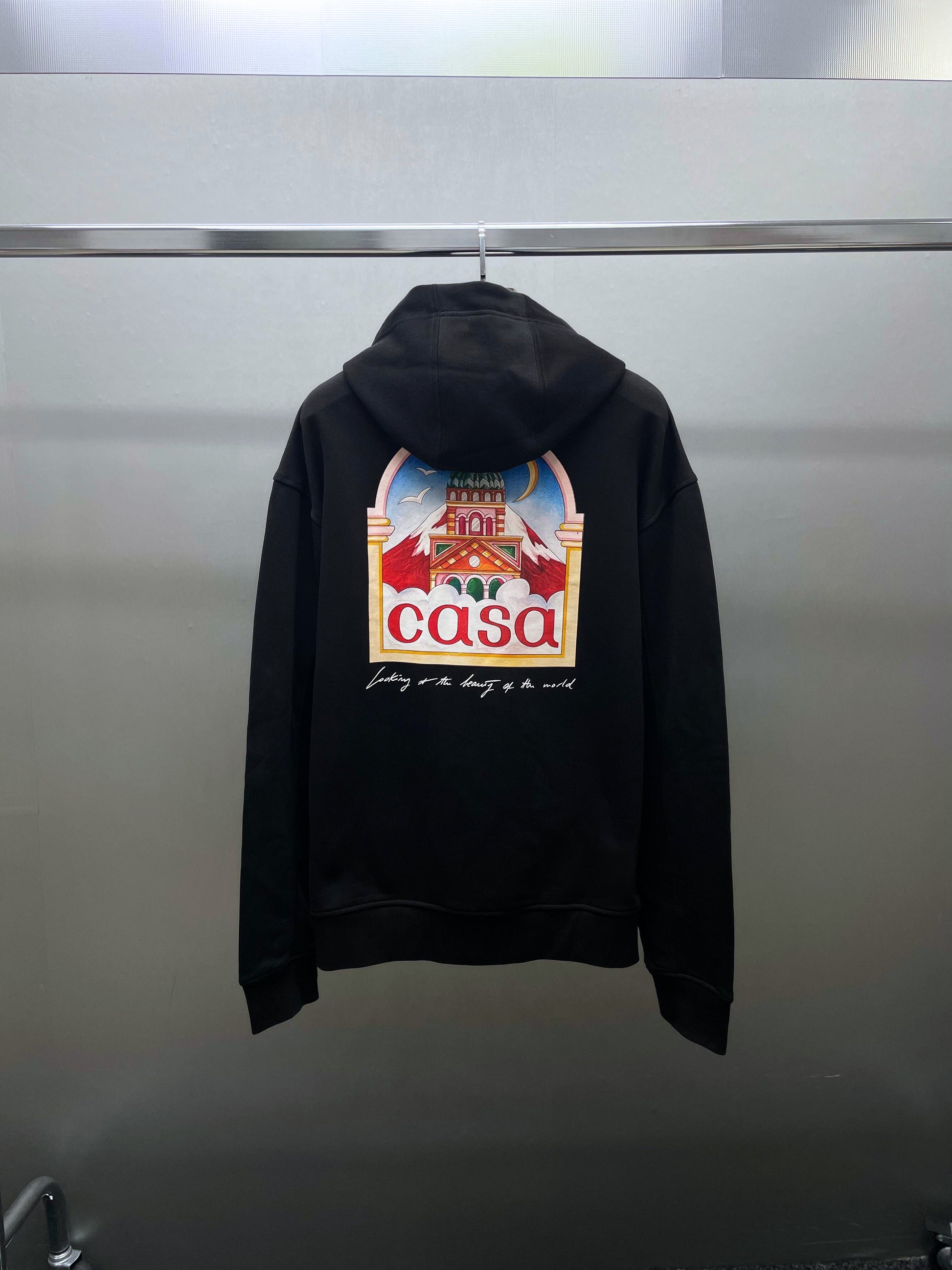 Moletom com capuz feito de lã de algodão macio. A peça é decorada com um dos novos designs desta temporada, que mostra o logotipo no peito e nas costas, do lado direito. A bainha e os punhos grossos e elásticos ajudam a manter o moletom no lugar quando você se movimenta e retêm o calor quando está frio.
