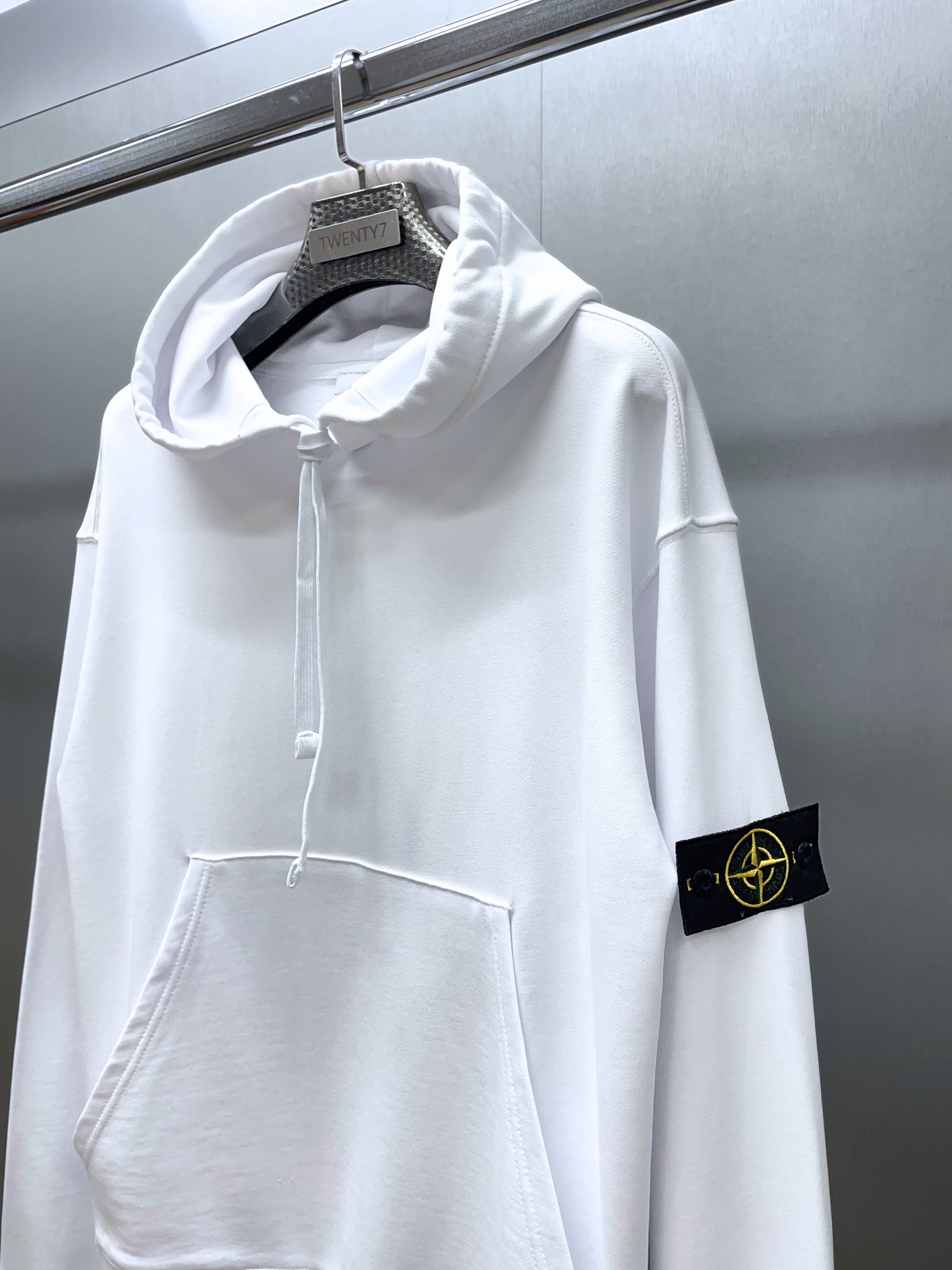 Moletom com capuz feito de lã de algodão macio. A bainha e os punhos grossos e elásticos ajudam a manter o moletom no lugar quando você se movimenta e retêm o calor quando está frio. Possui um prático bolso frontal para guardar pequenos itens.